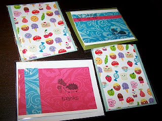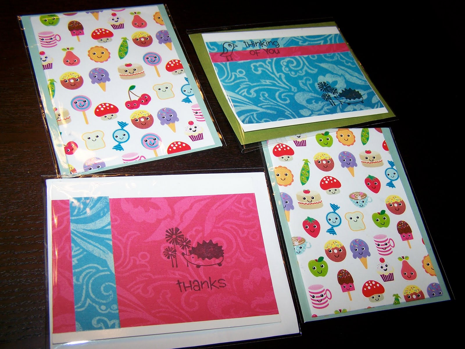 - Cute, Japanese inspired greeting cards. Shannin has an interest in pursuing an animation degree and she really likes Japanese, cutesy stuff. (I must admit, I love the food with faces aspect of these cards!) These will come in handy for sending with her other craft swaps.