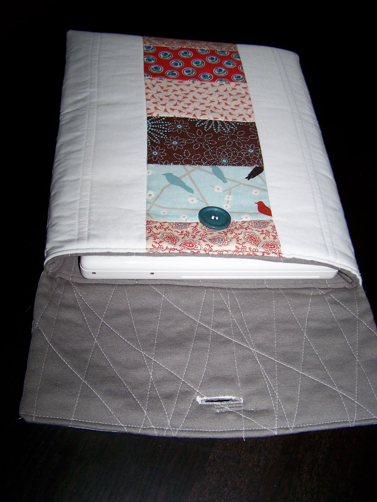 A birthday laptop cozy for fellow crafter and dear friend, Christie! The quilt squares were left over from a birds-inspired quilt I made last year, of which she was a fan.