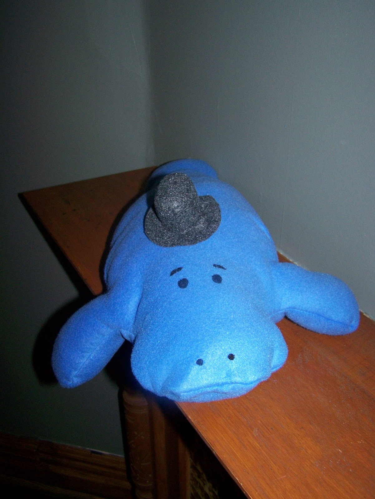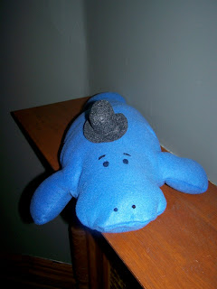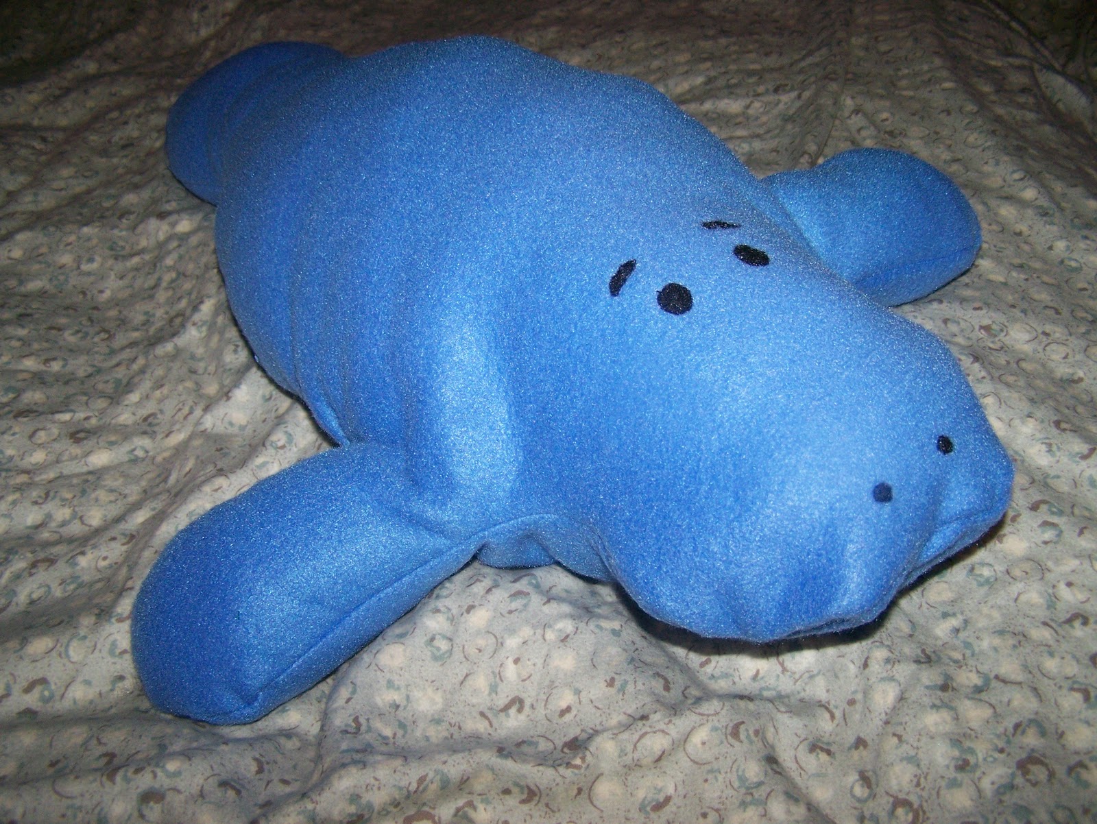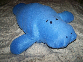 I had already cut out the pattern pieces for another blue manatee, and I finally sewed it up tonight. Ta da!
