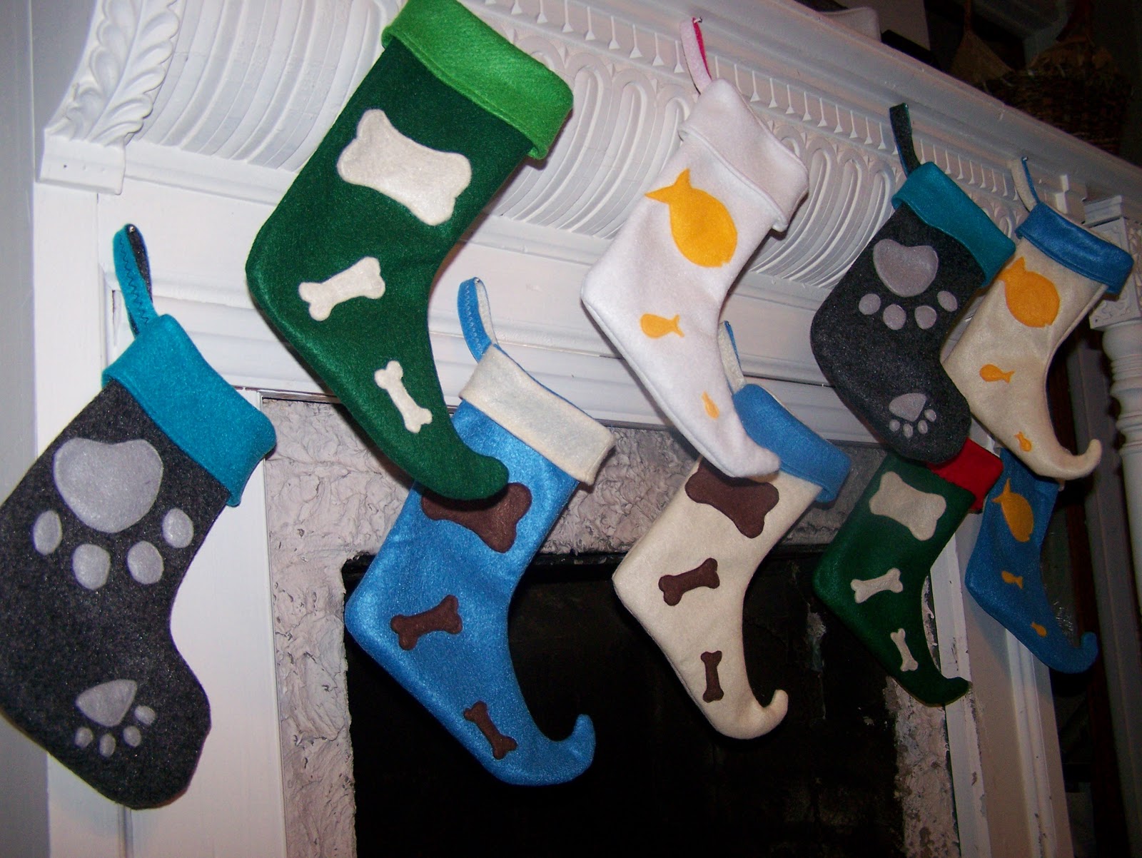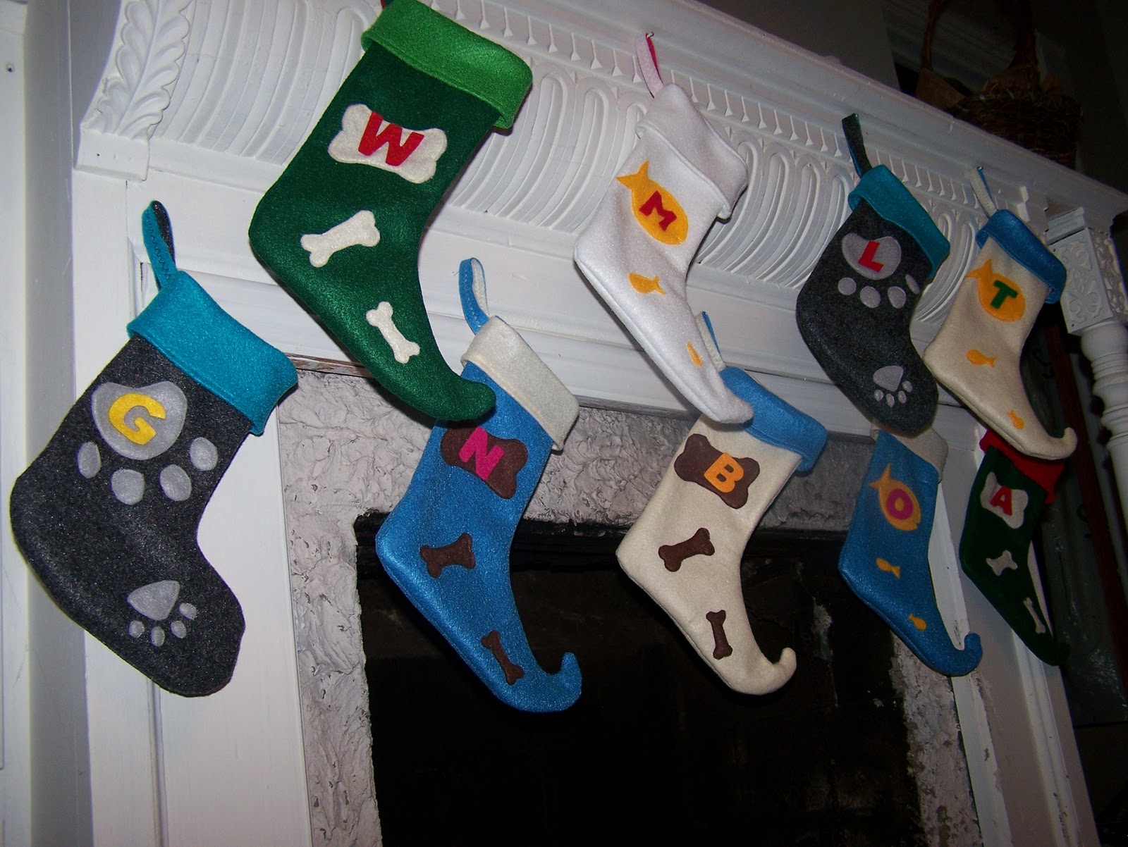 I finished up the elf-toed Christmas stockings (for dogs and cats), which each comes with an optional name initial.