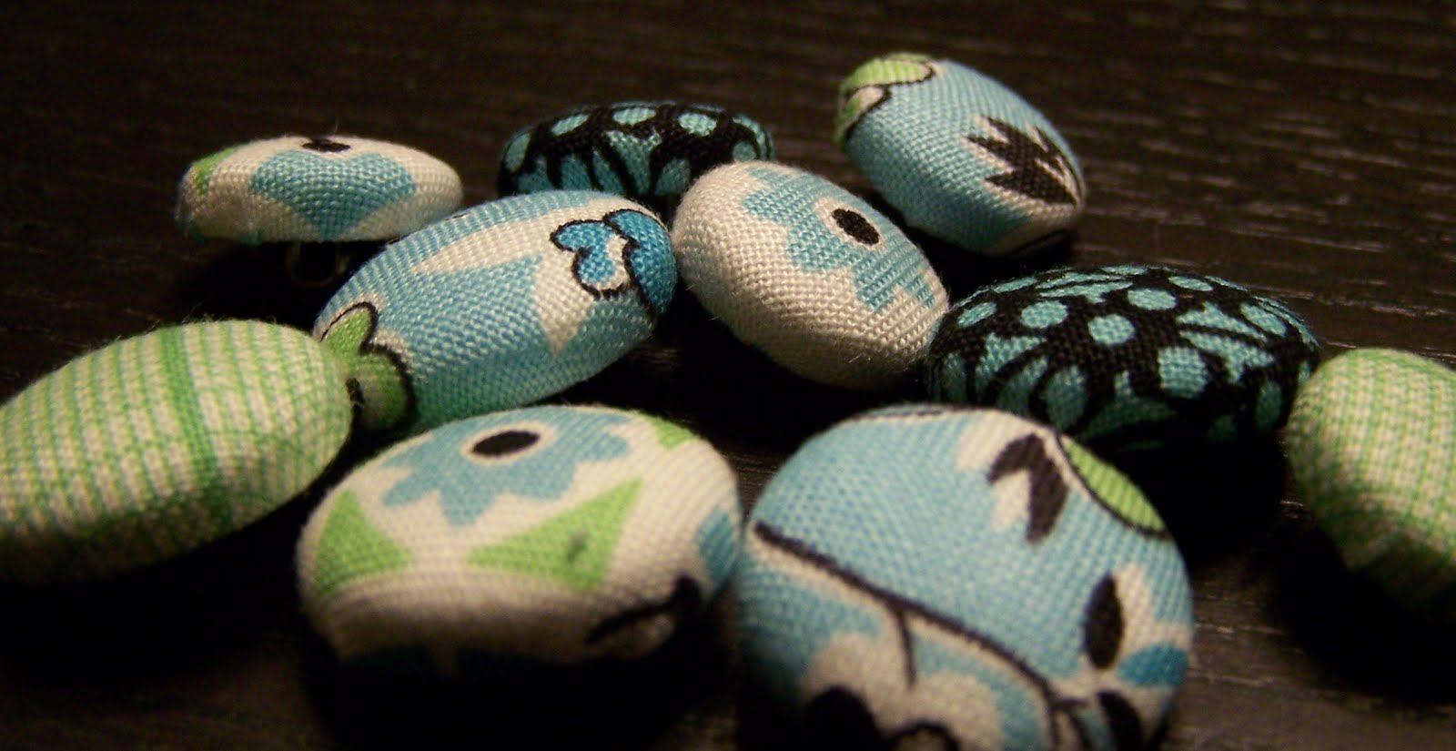 Denyse Schmidt Fabric covered buttons, in two sizes. Very fun and easy to make with the Dritz button cover kit!