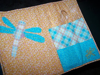 Here’s a closer shot of the silverware wrap! Barbara was a big fan of dragonflies and the color orange, so I embroidered some extra details to make it more “her.”