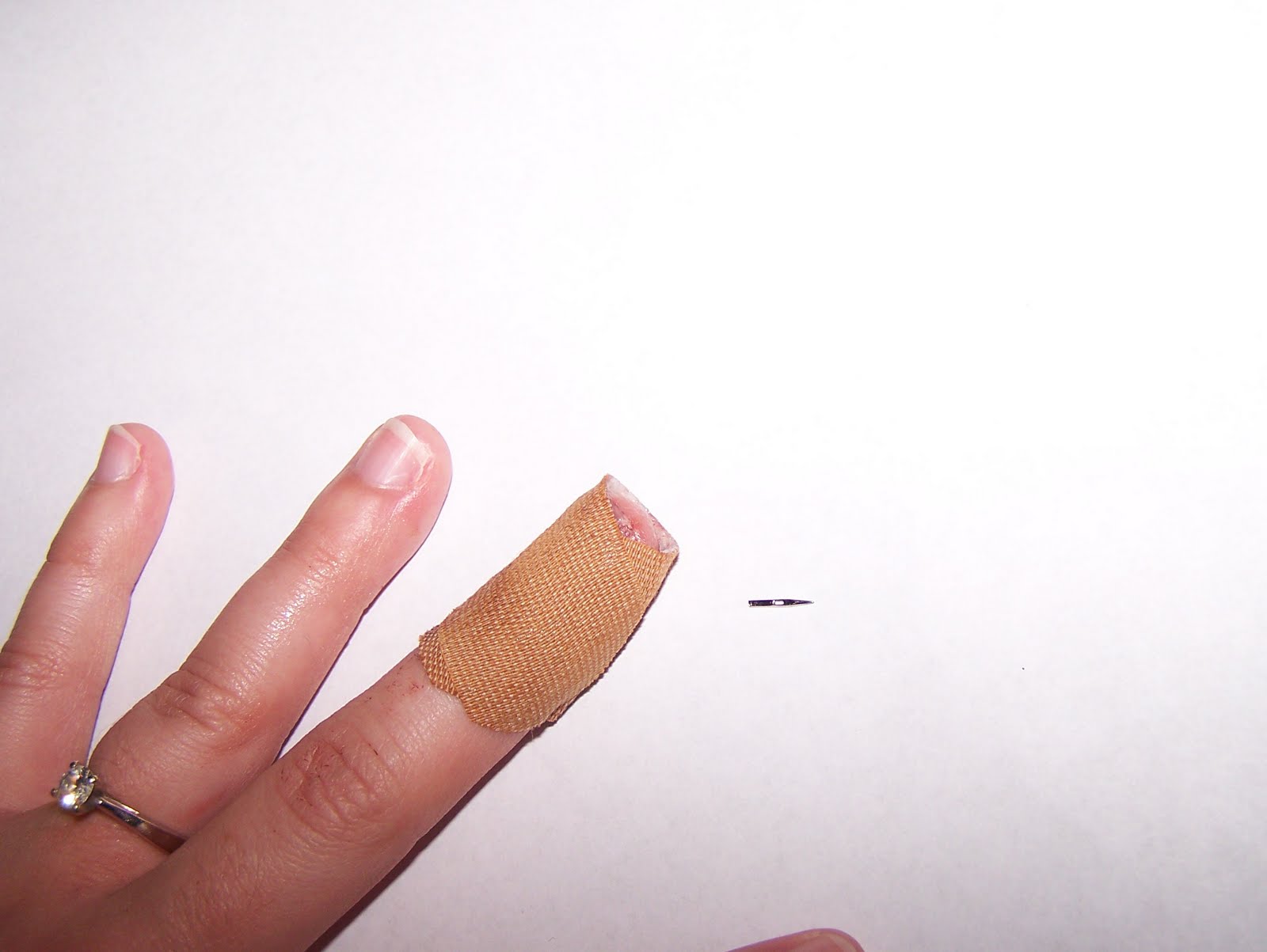 …I had to take a detour to the E.R. Yep, needle went into my finger, through the nail, and broke off inside my finger.